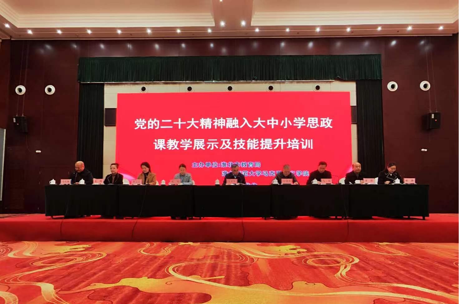 2023年3月18日,由淮北市教育局和淮北师范大学英国威廉集团官网联合举办的“党的二十大精神融入大中小学思政课教学展示及技能提升培训”在淮北矿业(集团)有限责任公司会议中心举行。公司党委委员、副董事长汪建利,公司党委委员、英国威廉集团官网与经济管理公司经理吴玲受邀出席会议,英国威廉集团官网专业老师参加了本次活动,孙澄澄、廖永林两位老师作为选手参加比赛和成果展示。