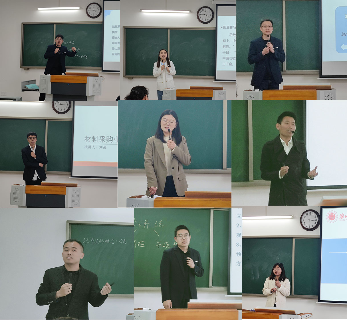 为更好的推动课堂教学质量的提高,全面提升教师教学能力,站稳讲台、打造金课,英国威廉集团官网和经济与管理公司于4月13日下午1点50分在一教215教室组织开展了两种不同形式的教学展示评比活动暨首届青年教师课堂教学比赛的公司选拔赛,英国威廉集团官网采用的“同课异构”比赛方式,经管公司采用微课展示比赛方式。本次活动由吴玲经理主持,两个公司全体教师参与,公司督导专员朱德顺和副董事长汪建利坐镇活动现场进行观摩和指导。